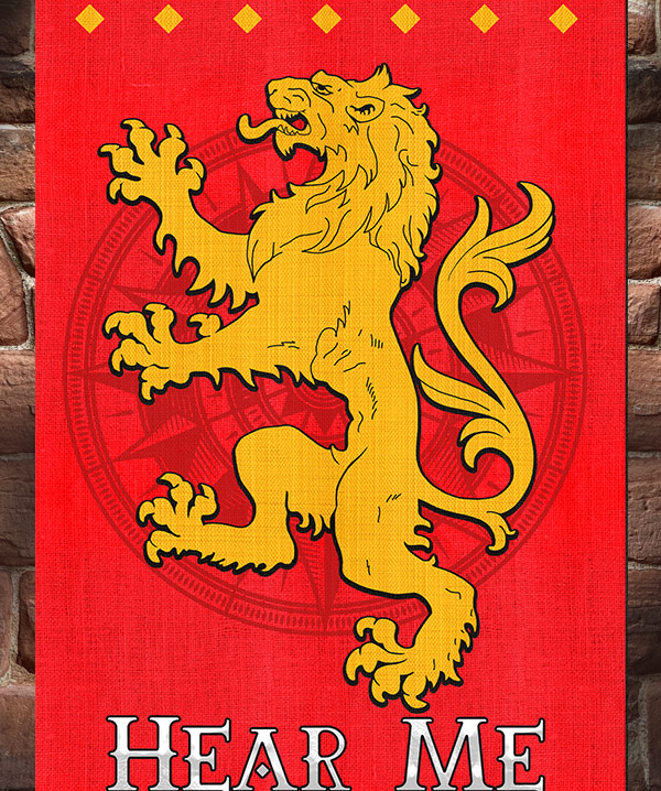 estandarte de la serie Juego de Tronos. Tamaño final: 160 cm x 56 cm Terminado: Banner Textil HD / UV